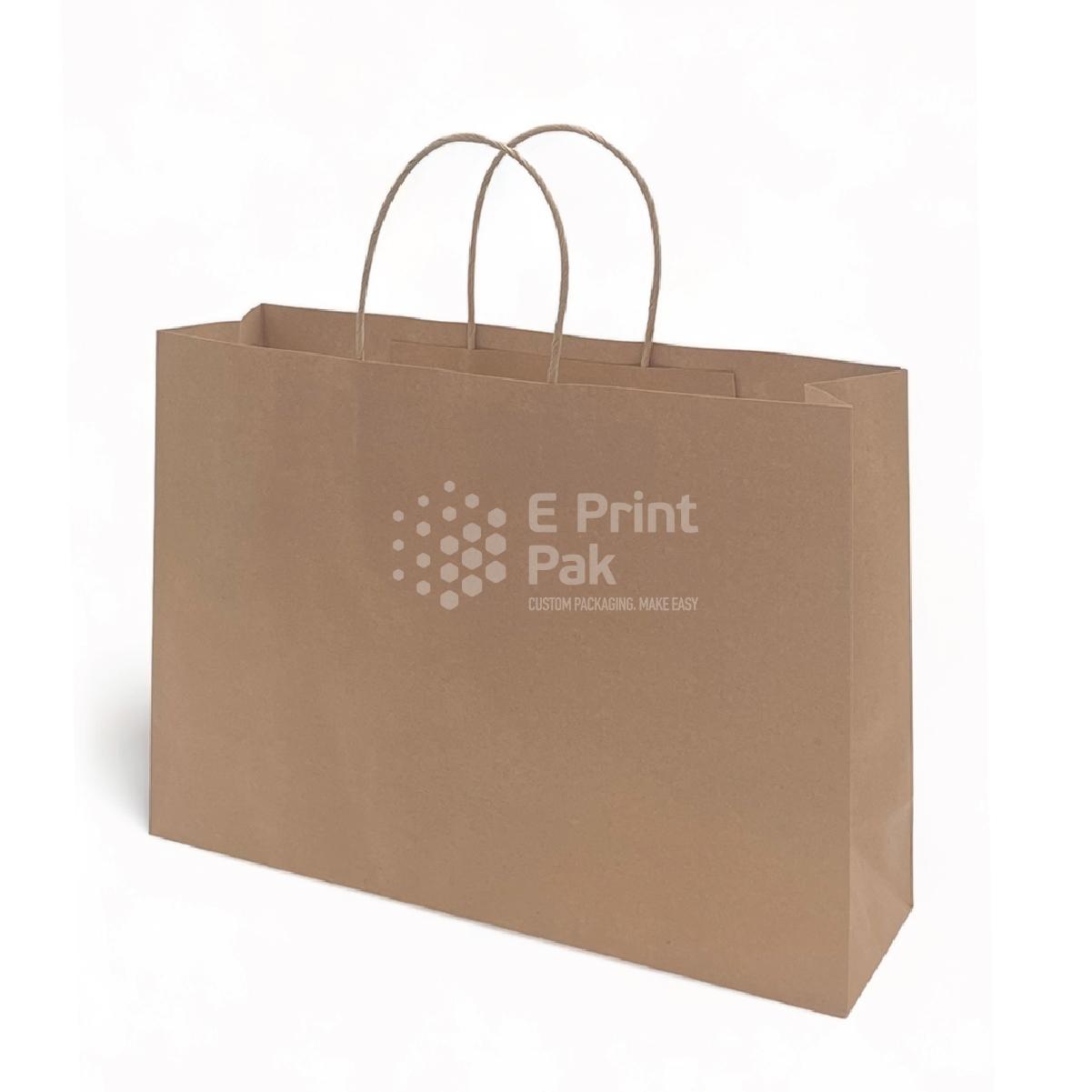 Eprint Pak’s Kraft paper bags – the perfect blend of sustainability and versatility. Crafted from recyclable Kraft paper with FSC certification, our bags are not only eco-friendly but also incredibly strong and durable. With a wide range of sizes to choose from, we cater to diverse needs and ensure a perfect fit for various items. Customization is at your fingertips with Eprint Pak. Select from our plain paper bags for a clean and minimalistic look or personalize them with your own design, even for smaller orders. We believe in helping your brand make a lasting impression. With Eprint Pak’s Kraft paper bags, you can elevate your packaging while embracing sustainability. Trust in our quality, versatility, and commitment to environmentally responsible practices for all your packaging needs.